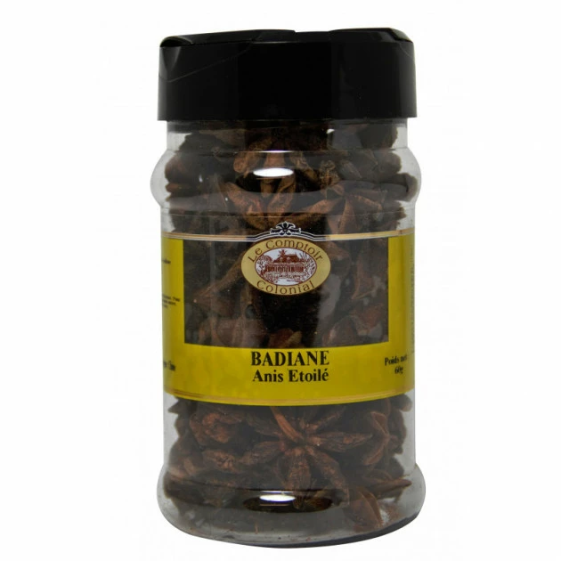 Également appelée anis étoilé ou badiane chinoise, la Badiane Le Comptoir Colonial est une épice qui vient du fruit du badanier que l’on fait sécher. Facilement reconnaissable grâce à ses 8 branches, elle possède un goût proche de celui de l’anis vert (anisé, frais et sucré) mais plus intense. On retrouve l’anis étoilé dans de nombreux mélanges d’épices.