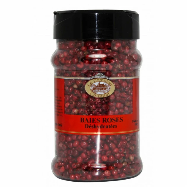 Parfois appelées “poivre rose”, les Baies Roses ne sont pourtant pas de “vrais” poivres, puisque non issus de la famille d’arbres appelée piper nigrum. Les Baies Roses Le Comptoir Colonial possèdent des notes très fruitées et sucrées, tandis que le piquant et le goût poivré sont très discrets en bouche.