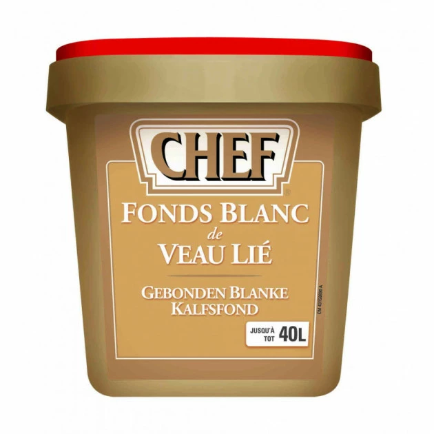 Fonds blanc de veau lié : Base pour veloutés et sauces blanches, pochage de viandes blanches, mouillement de blanquettes et de fricassées.