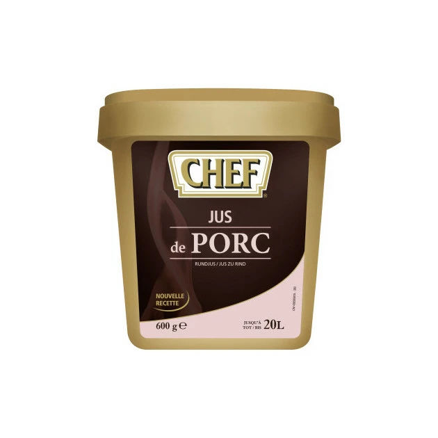 - Boite de 600 g (poids net) pour préparer 20 litres de Jus de porc
