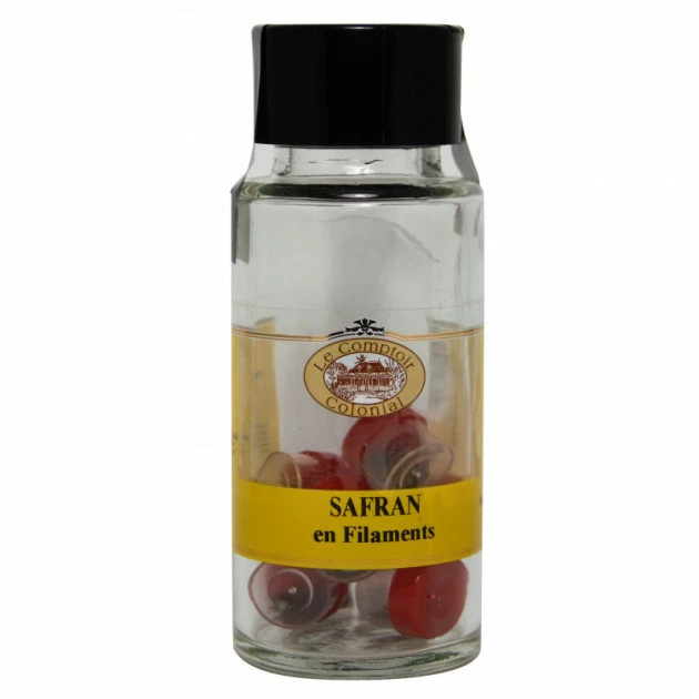 Ăgalement appelĂ© Or Rouge, le Safran Le Comptoir Colonial est obtenu grĂące aux pistils du crocus. Difficile Ă produire et Ă rĂ©colter, c’est Ă ce jour l’Ă©pice la plus chĂšre au monde. ApprĂ©ciĂ©s pour leur couleur rouge intense, les Pistils Safran sont utilisĂ©s dans la prĂ©paration de la bouillabaisse, du risotto alla milanese ou encore de la paĂ«lla. Afin qu’il libĂšre tous ses arĂŽmes, il est conseillĂ© de faire infuser le safran avant de l’incorporer Ă la recette. Â