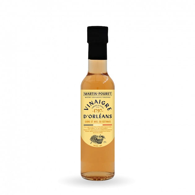 Mêlant les saveurs fruitées et acidulées du cidre de pomme Normand, à la douceur du miel du Gâtinais, le vinaigre Martin-Pouret constitue un ingrédient riche et gourmand pour toutes vos recettes !